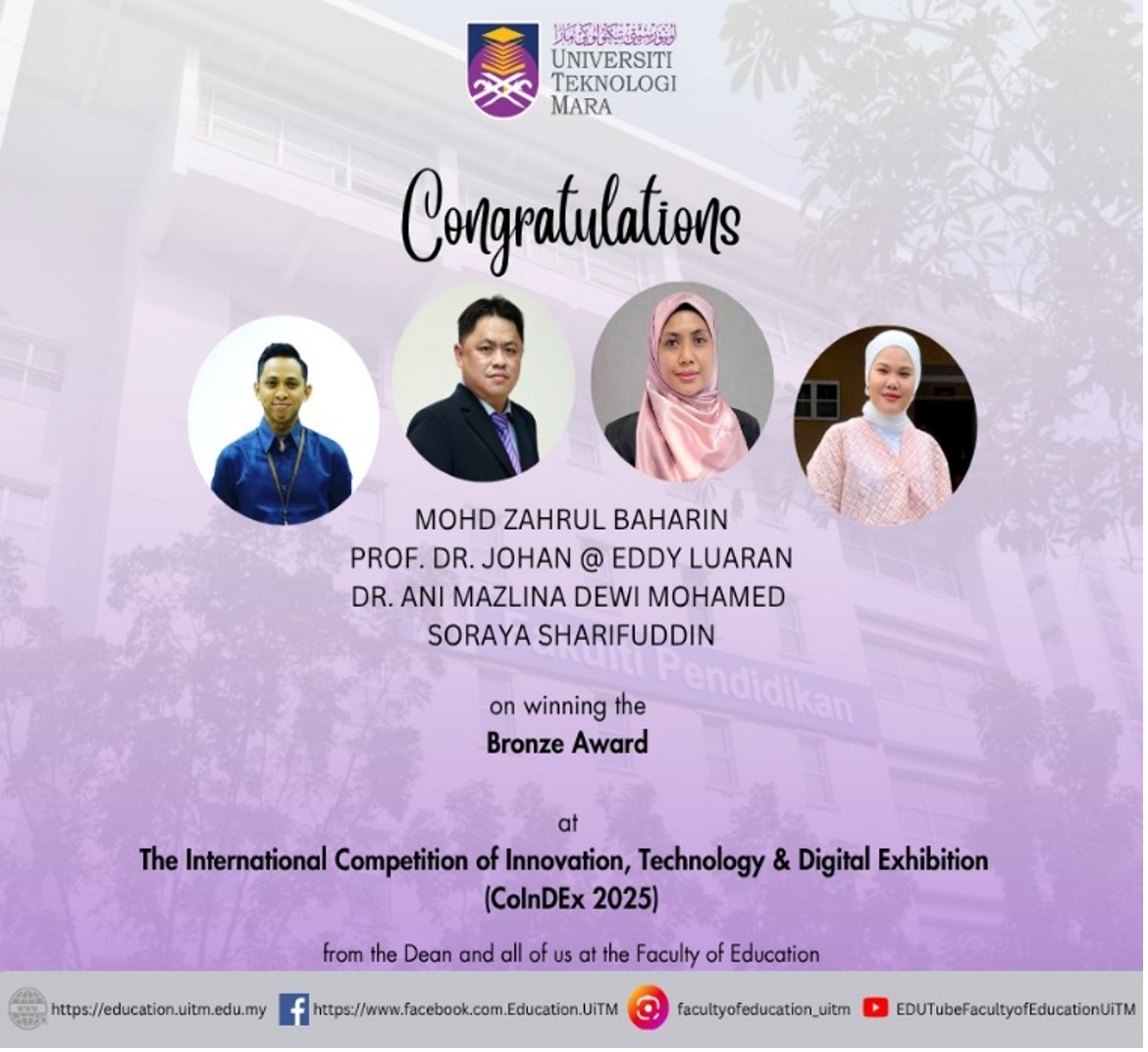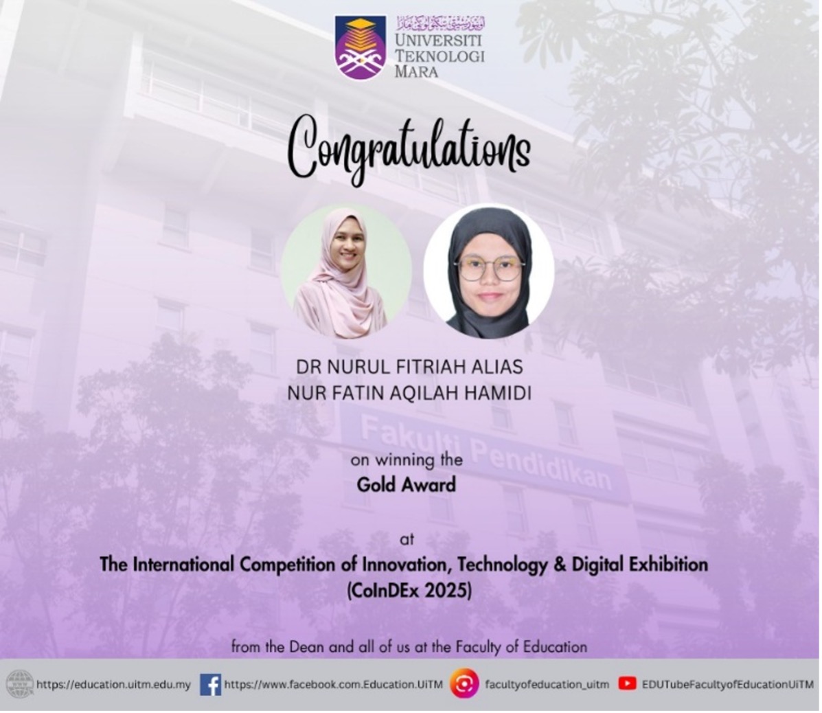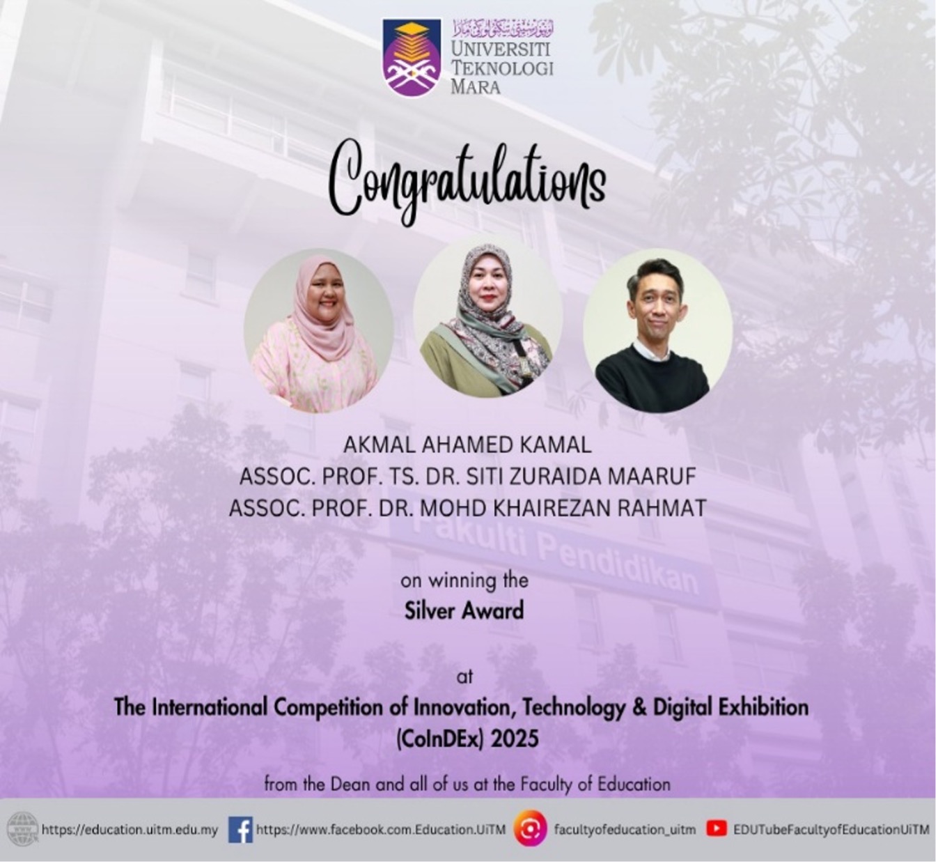 The Faculty of Education extends its warmest congratulations to all lecturers who achieved outstanding success at the International Competition of Innovation, Technology & Digital Exhibition (CoInDEx 2025).